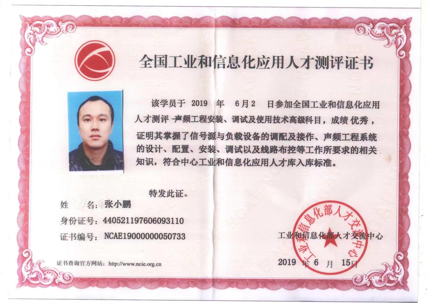 國家工信部認證:信息化應用工程師 音視頻安裝工程師